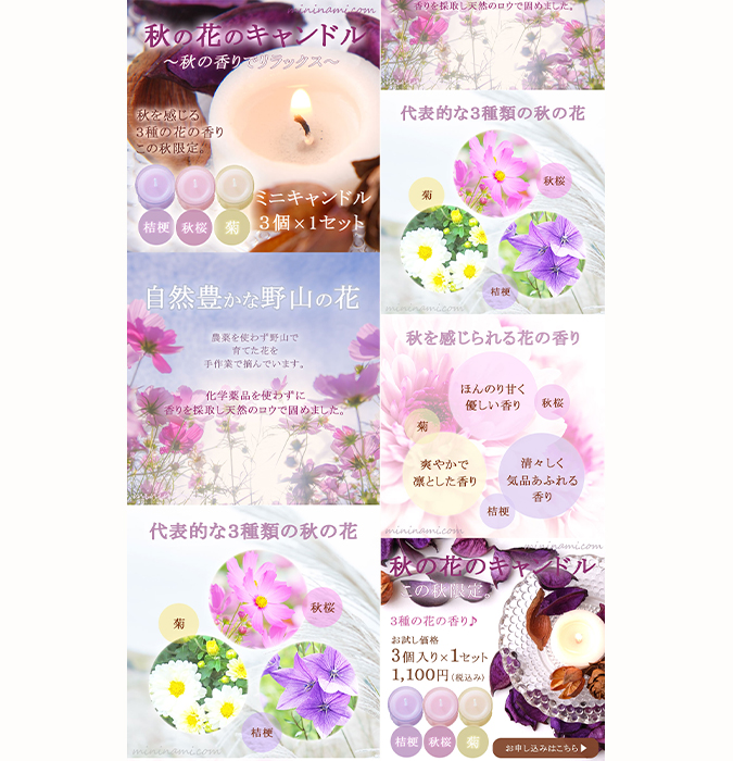 【秋の花の3種の香りキャンドルの通販】